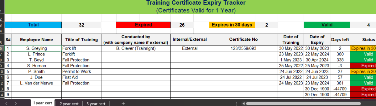 G3 Training Certificate Expiry Tracker